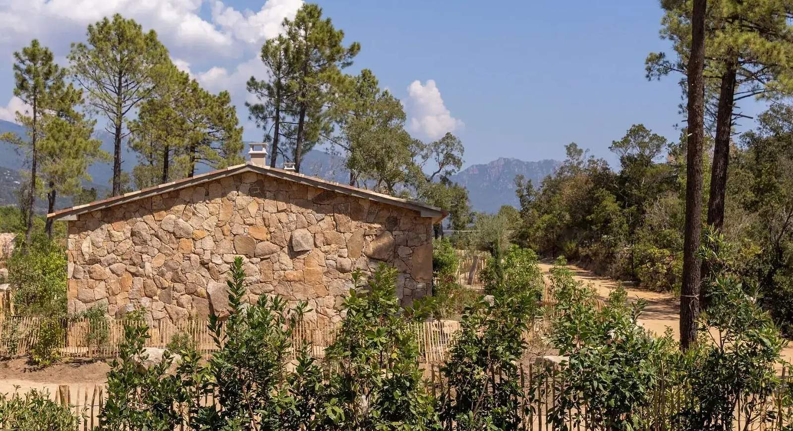 Ici, le maquis odorant, les collines arborées. Au loin, la silhouette des pins.