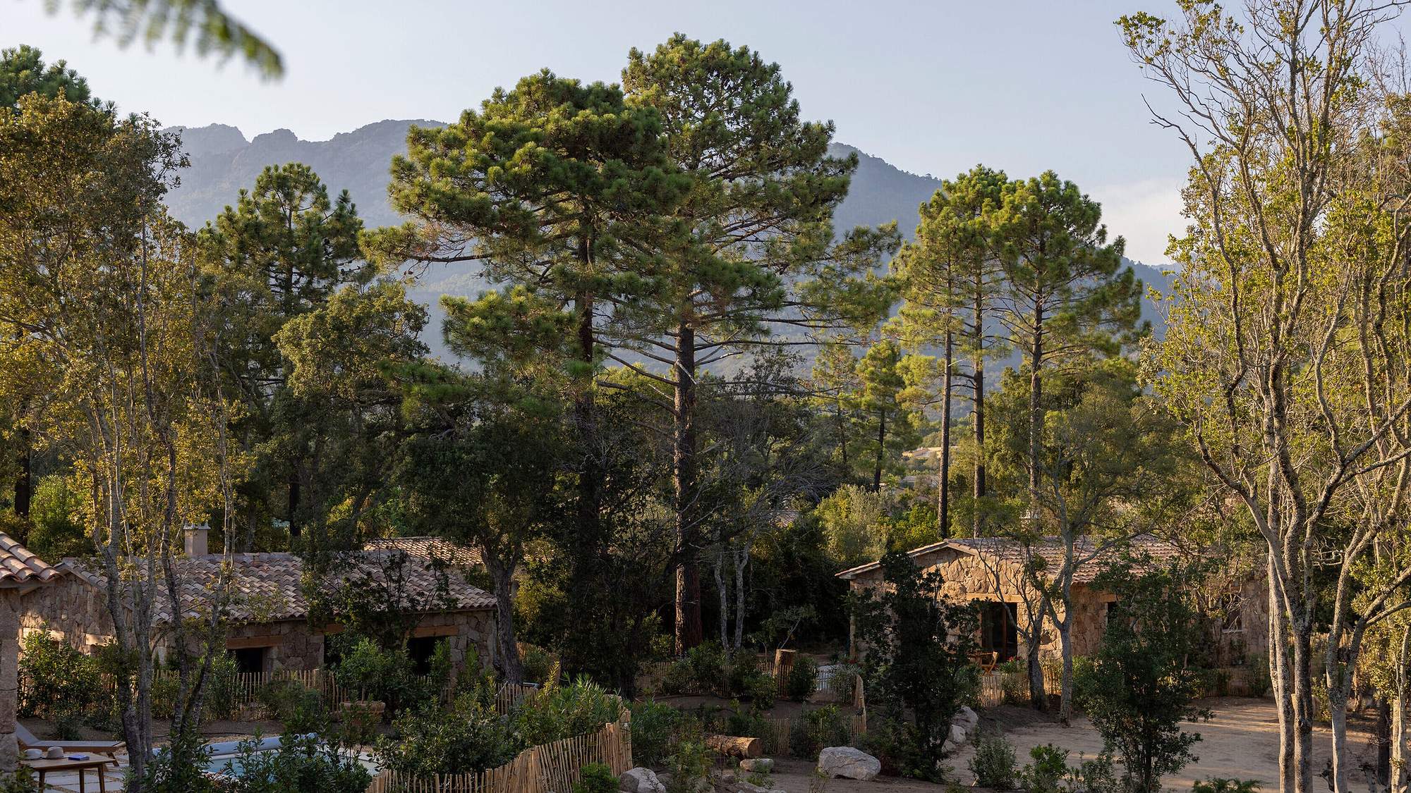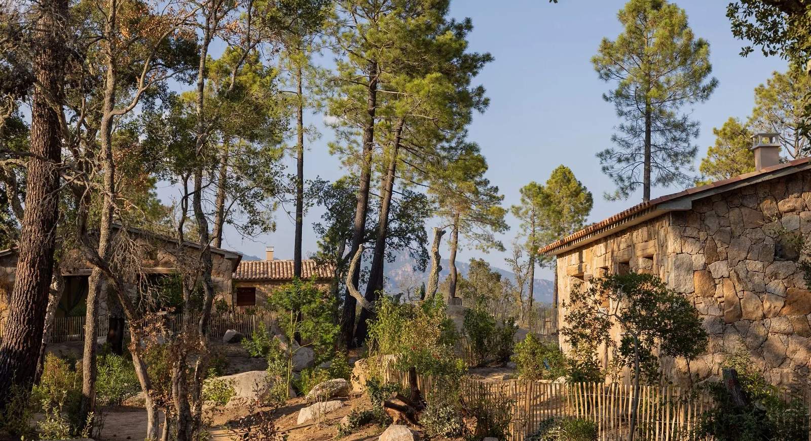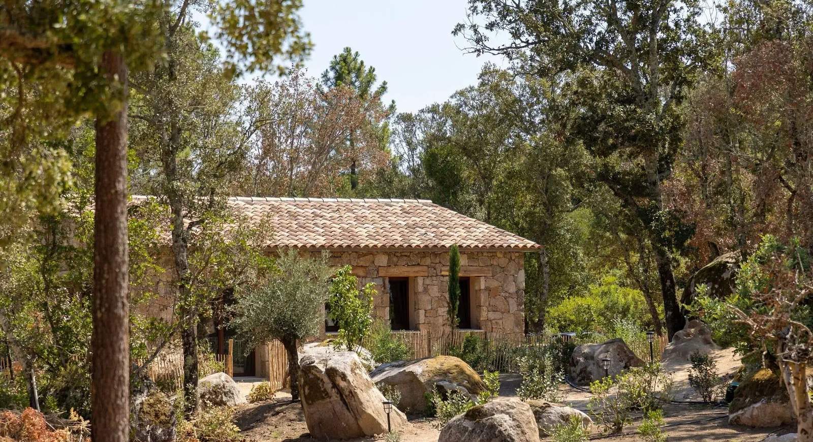 Invisible depuis la route, le Hameau de Petripini dévoile ses ‘caseddi’ d’exception, ces maisons inspirées des bergeries traditionnelles corses, dans un cadre privilégié de l’arrière-pays de Porto-Vecchio et bordé par les hauteurs du massif de l’Ospedale.