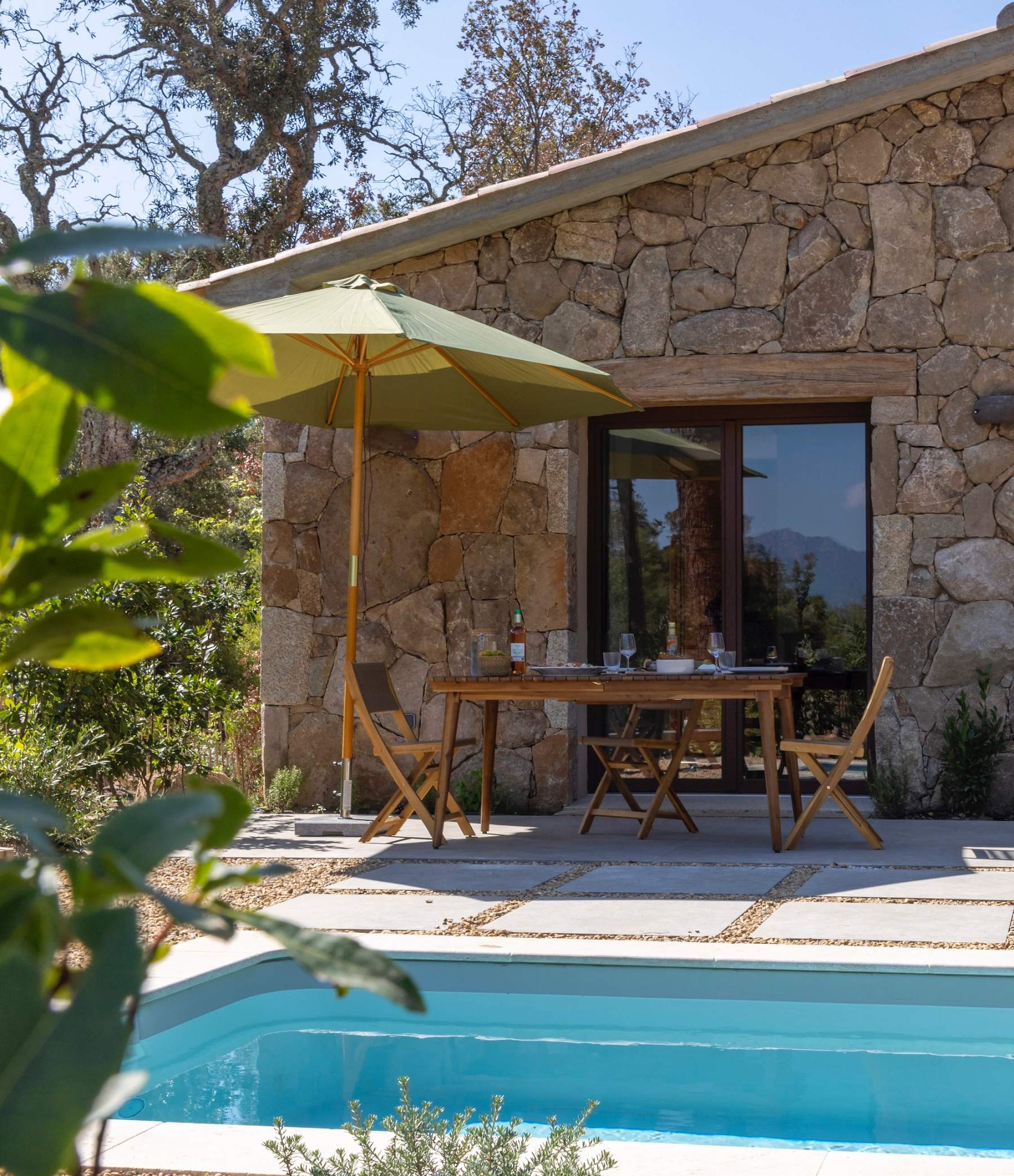 Invisible depuis la route, le Hameau de Petripini dévoile ses ‘caseddi’ d’exception, ces maisons inspirées des bergeries traditionnelles corses, dans un cadre privilégié de l’arrière-pays de Porto-Vecchio et bordé par les hauteurs du massif de l’Ospedale.
