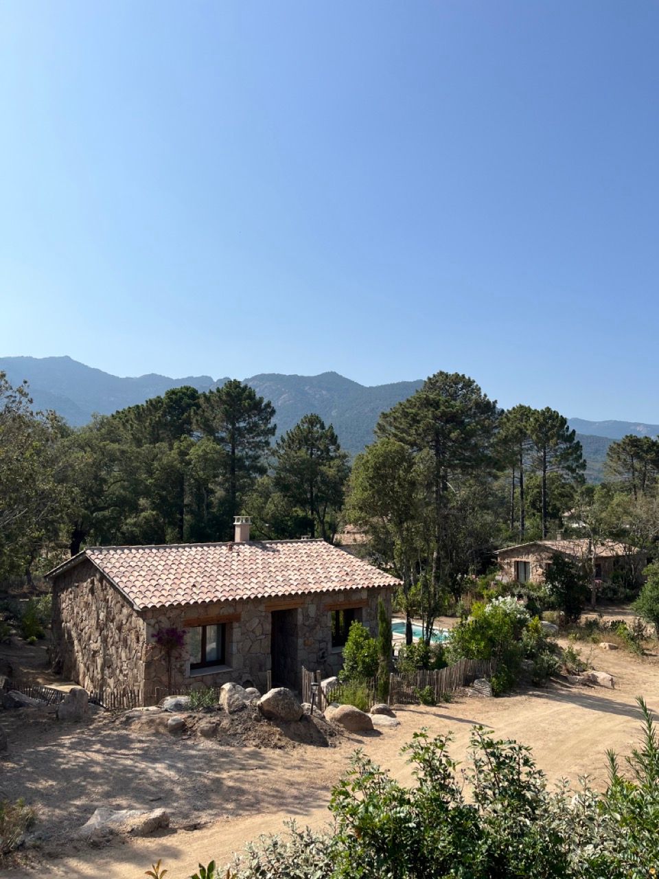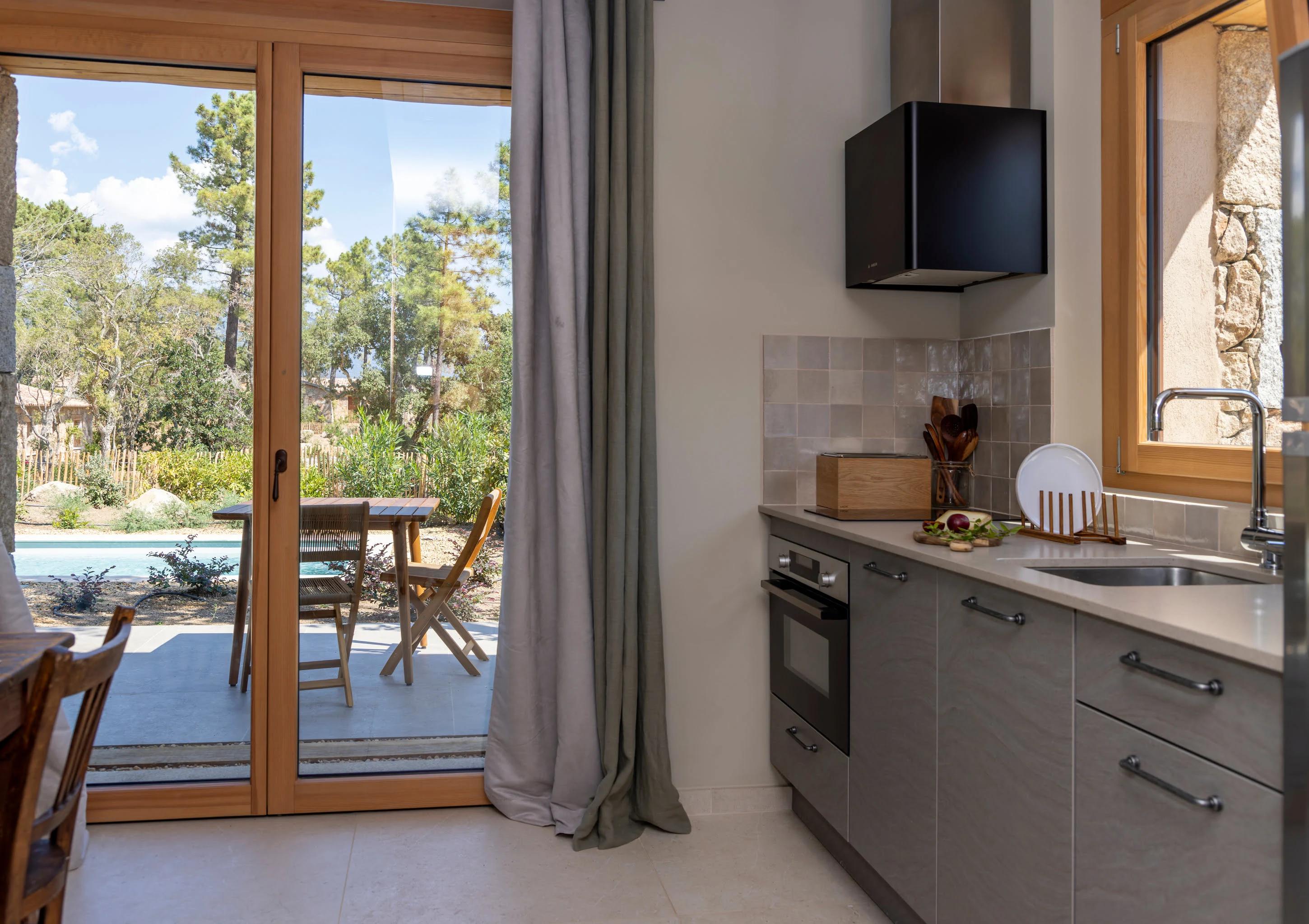 BARACI, CANELLA et FOLACA sont trois maisonnettes indépendantes de 52 m² avec vue sur les montagnes, les pins et les jardins du hameau de Petripini.