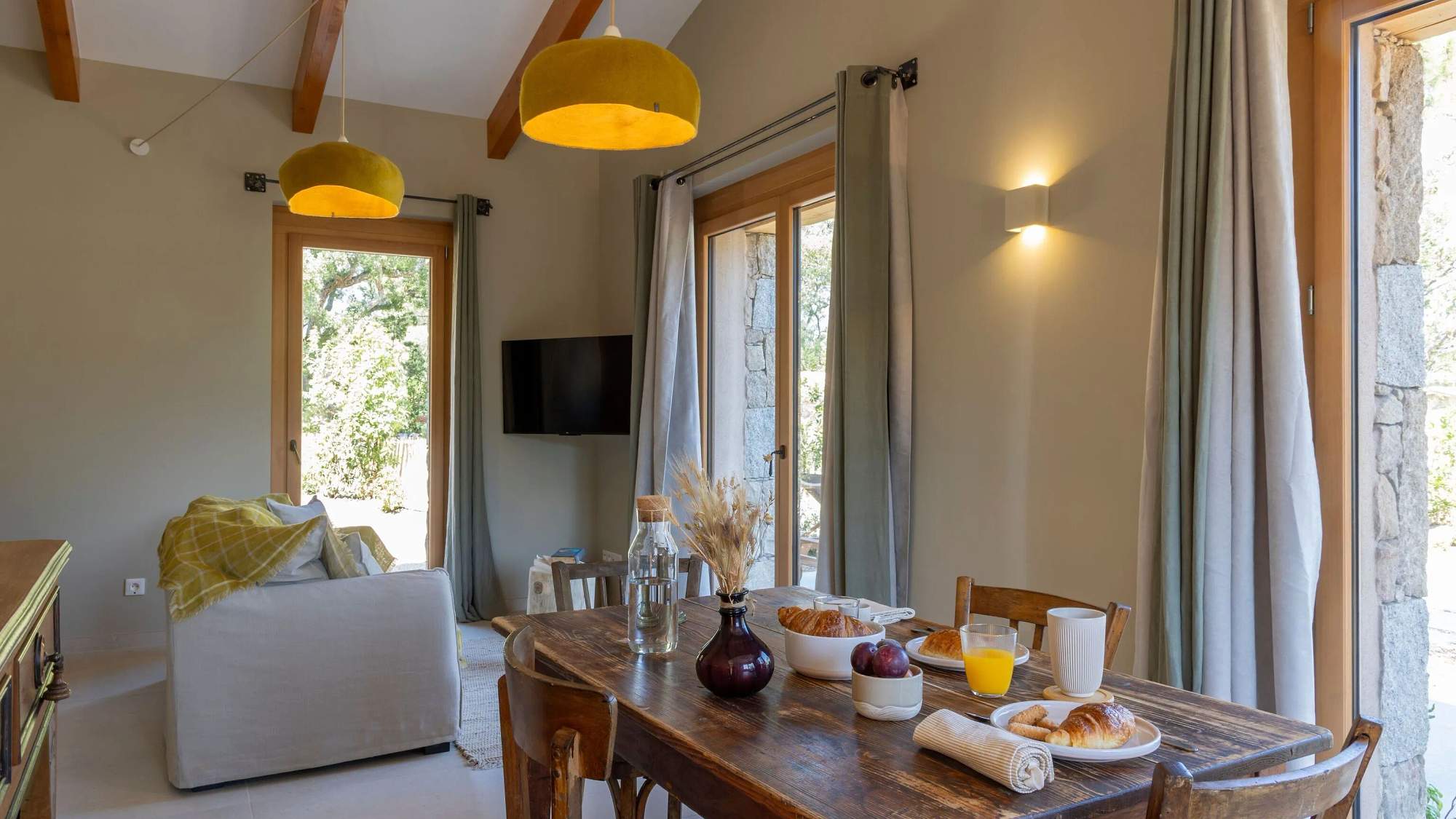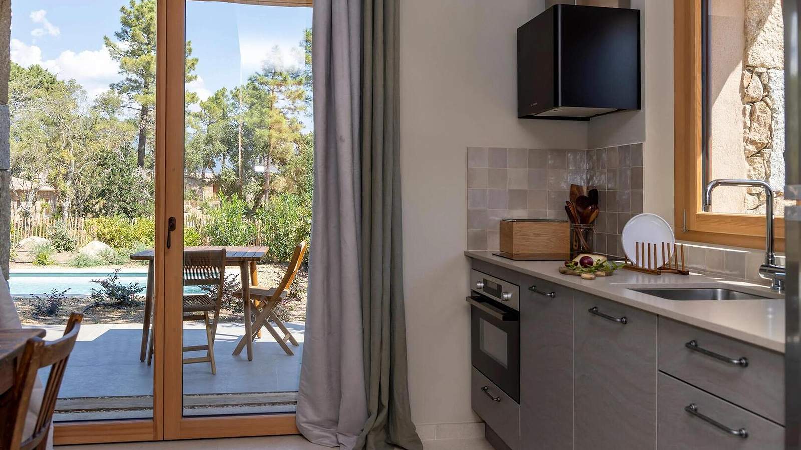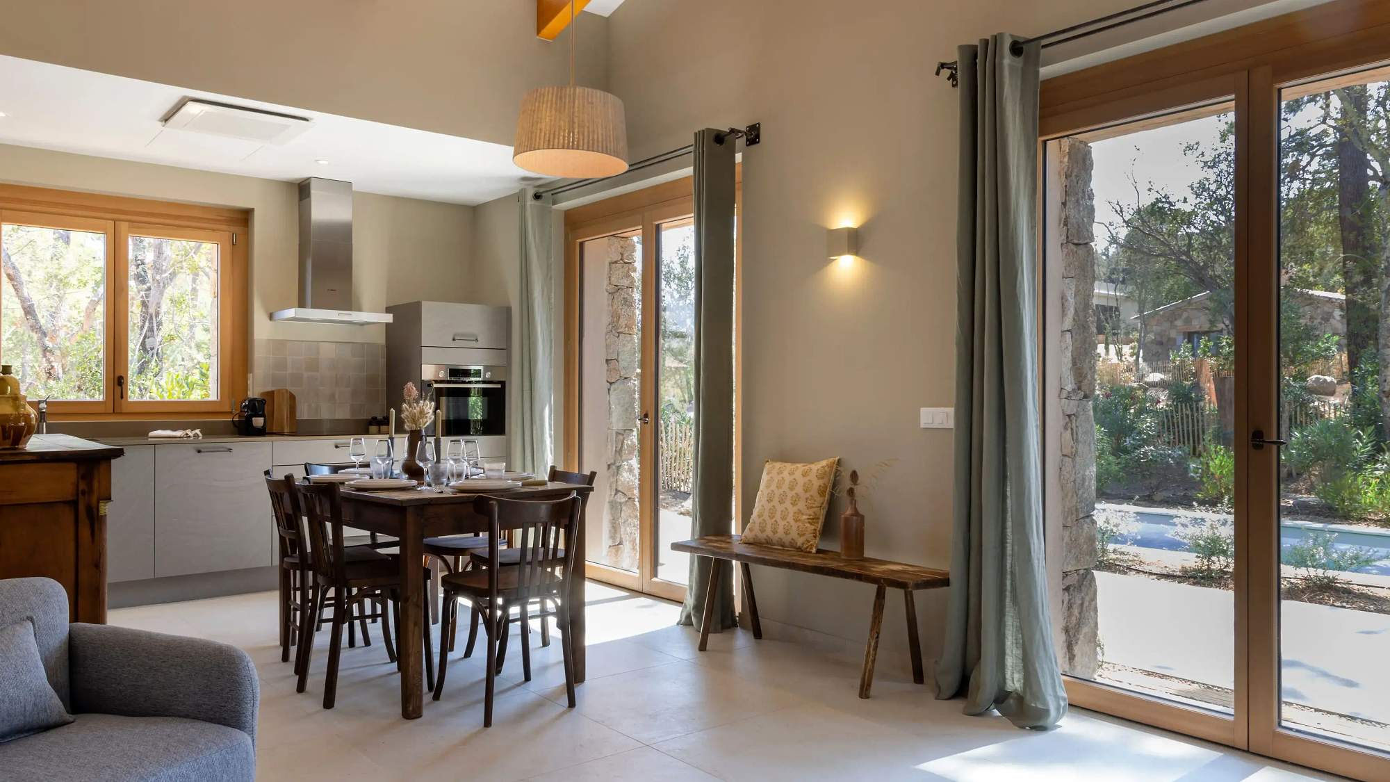 ALISO et ERCO sont deux mini-villas indépendantes de 64 m² avec vue sur les montagnes, les pins et les jardins du hameau de Petripini. Elles se composent de deux chambres, une salle d’eau et sa douche ainsi qu'un WC indépendant. La cuisine ouverte sur la salle à manger et le salon donnent sur une belle terrasse et piscine privative.